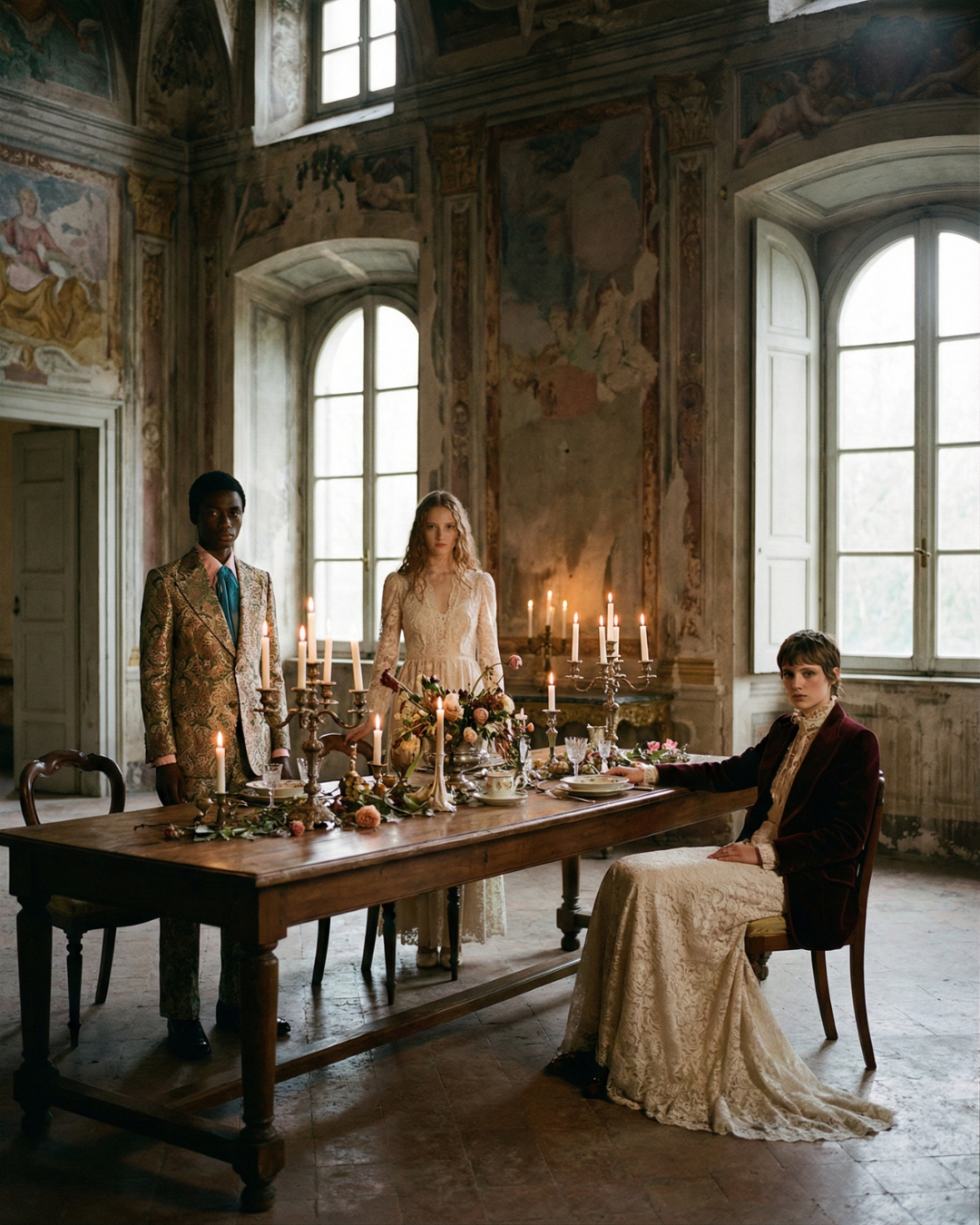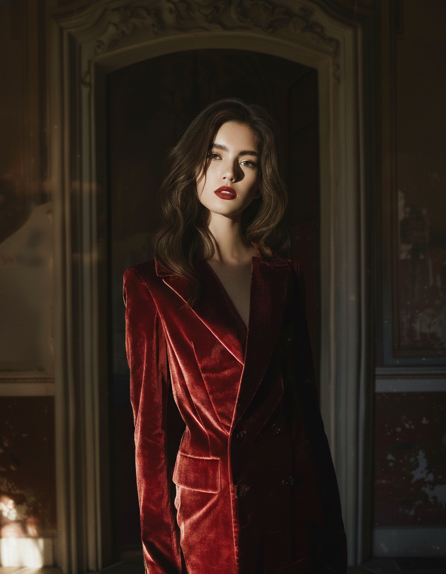 In Eredità Proibita, the conceptual collection reframes Italian inheritance through a controlled tension: Milanese tailoring discipline set against Florentine romantic fluidity, with decadence treated as material proof and